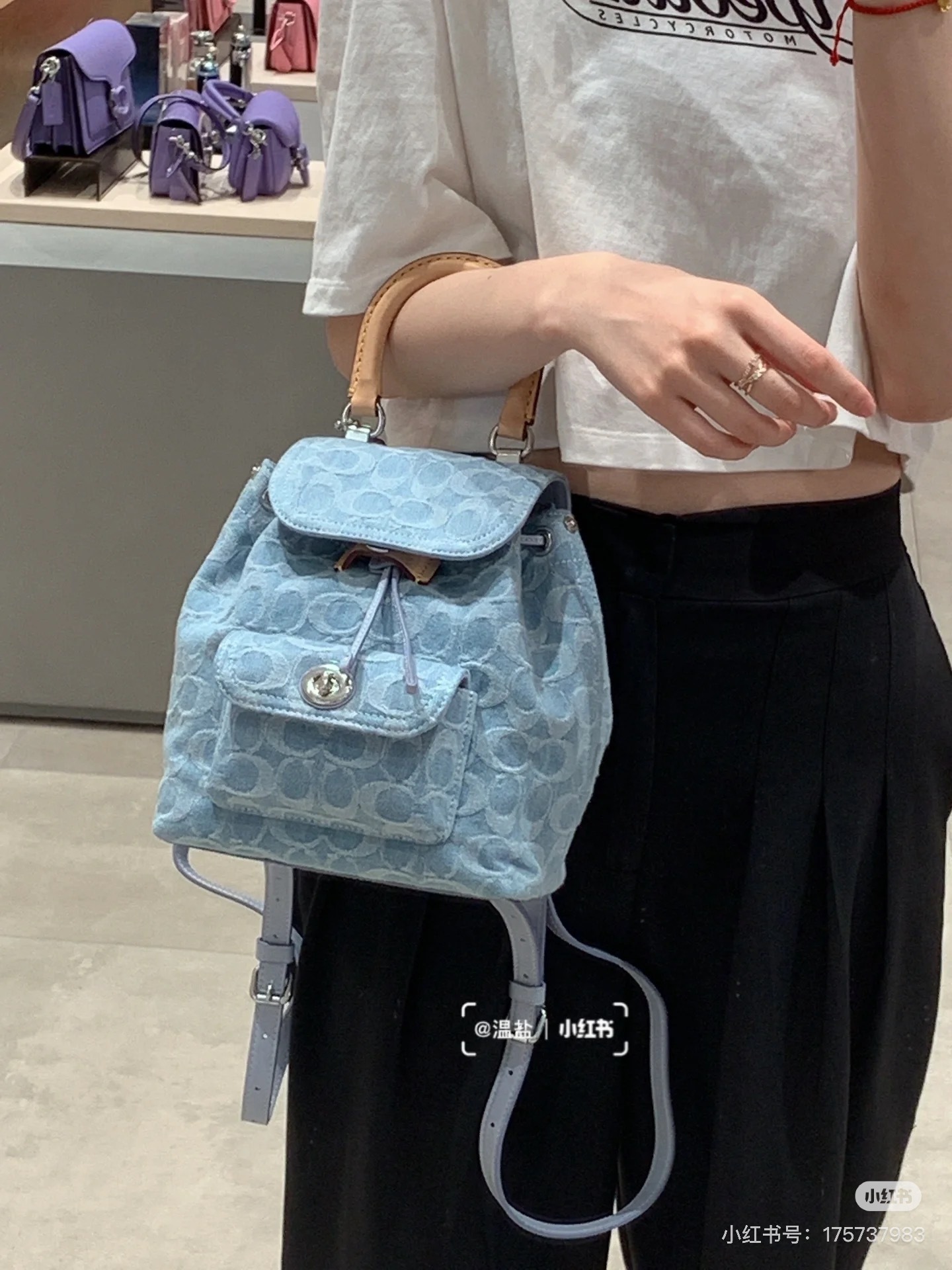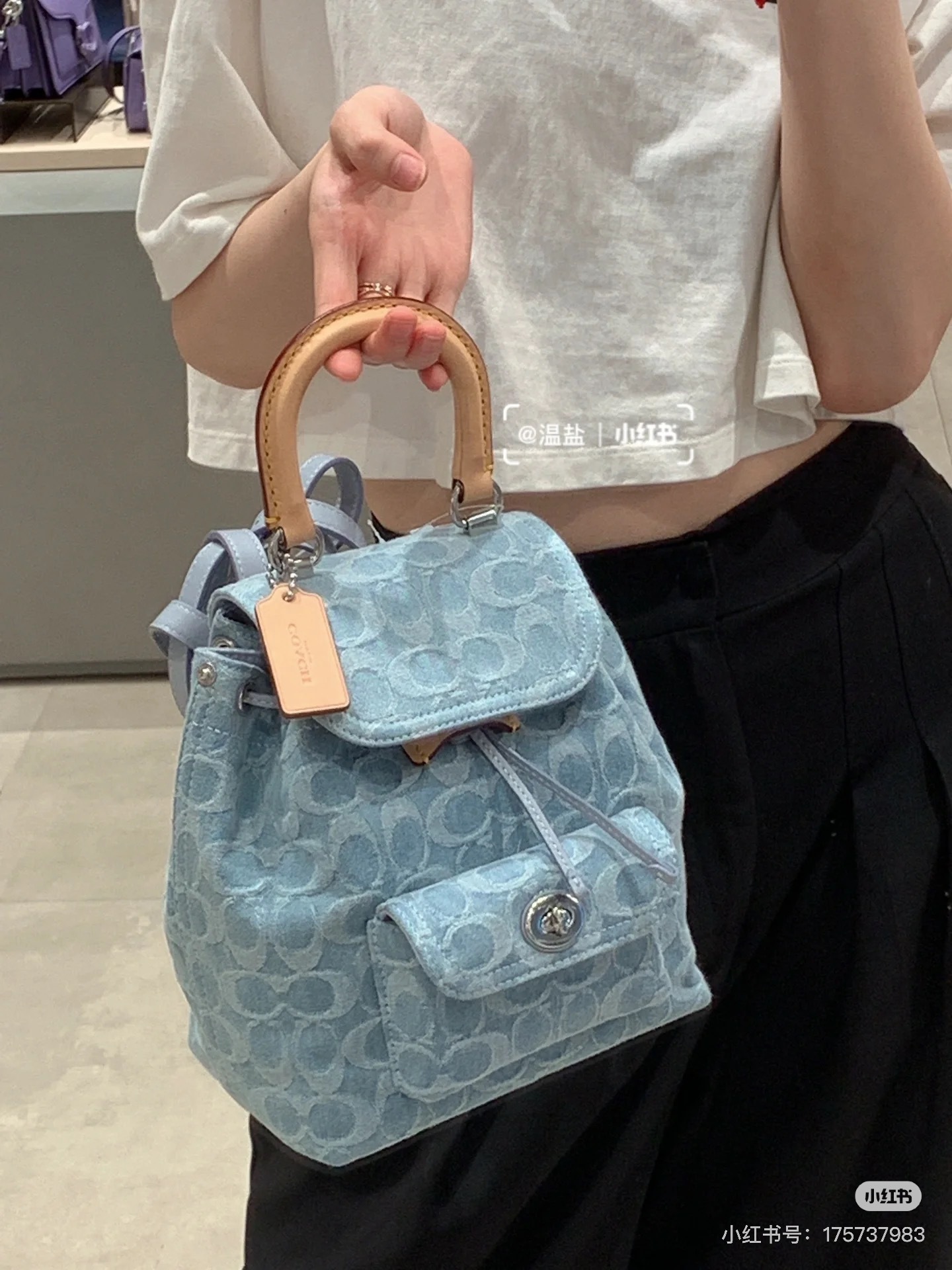 This Coach backpack is the perfect match for your fresh and breezy summer vibes! Designed with a charming blend of chiffon fabric and soft blue accents, it’s a lightweight everyday essential that effortlessly combines style and practicality.
